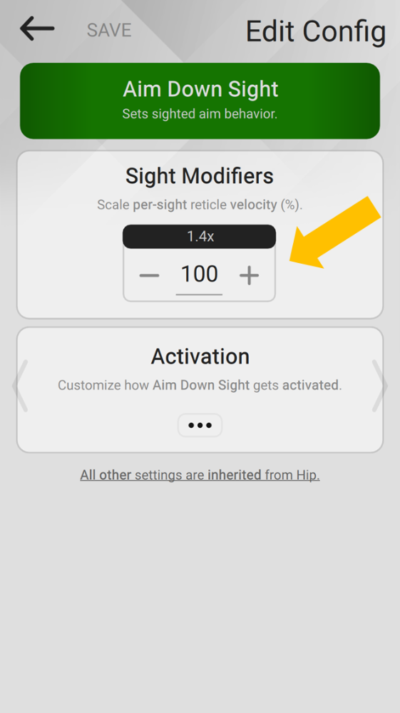 If you prefer to use your hip settings while aiming down sight, you can enable settings inheritance. Available options are: