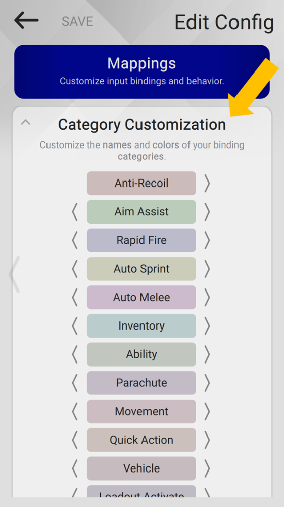 Categories enable Config creators to organize their bindings based on function.